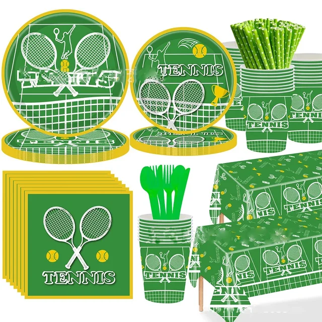 8pcs Tennis Theme Disposable Tableware Green Sports Tennis Court Paper Plates Cup Napkin Happy Sporting Boy Birthday Party Decor