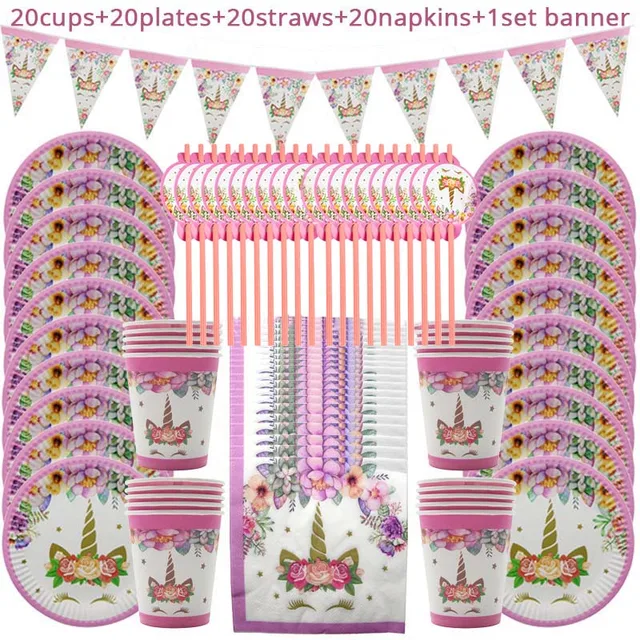 81pcs Unicorn Party Supplies Unicorn Tableware Set Unicorni Paper Cup Plate Napkins Birthday Party Decoration Baby Shower Girl
