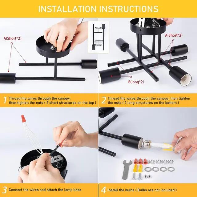 Semi Flush Mount Modern Chandelier Mid Century Modern Chandelier Close to Ceiling Lighting Black Ceiling Light Fixture Sputnik C