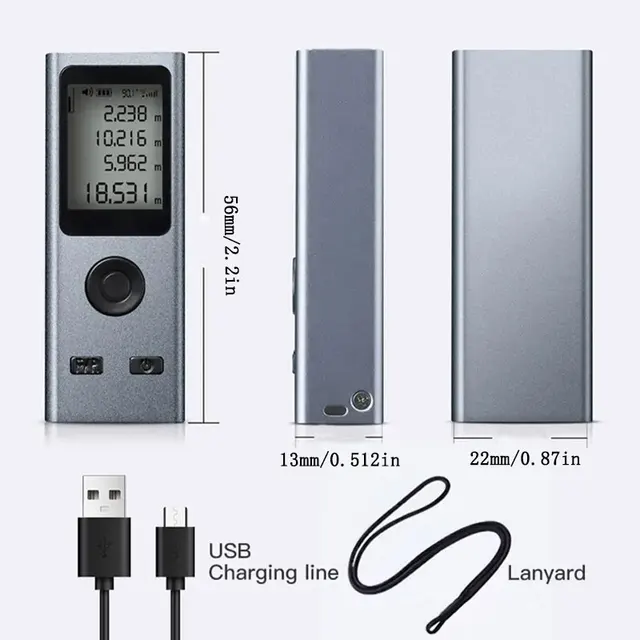 40M/60M Mini Smart Laser Distance Meter Measure Infrared Rangefinder USB Rechargeable Portable Handheld Laser Range Finder Tools