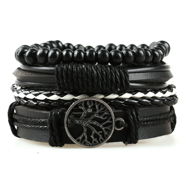 Tree of Life Alloy Accessories Four Combination Set Leather Men’s Bracelet Wooden Beads Hand-woven Leather Ornament