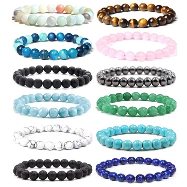 8mm Stone Bracelet Volcano Stone Tiger Eye Stone Powder Crystal Elastic Bracelet