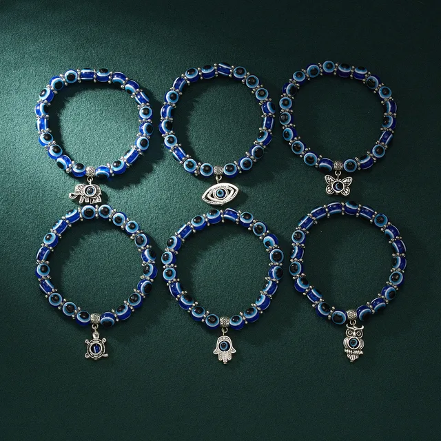 Classic Turkish Lucky Evil Eye Bracelets for Men Women Blue Evil Eye Palm Butterfly Pendant Beads Bangles Handmade Charm Jewelry