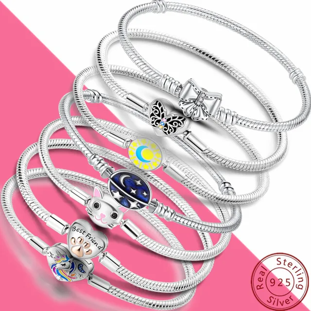 Bracelet Silver 925 Original Snake Chain 17-20 Evil Eye Heart Star Zircon for Charms Beads Pendant Birthday Jewelry Making Gifts