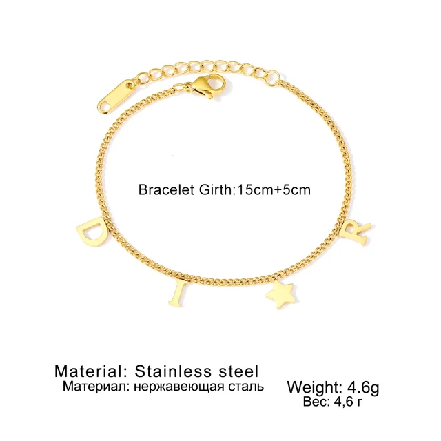 Korea New Fashion Letter Star Pendant Bracelet Woman Simple Vintage Stainless Steel Bracelet Luxury Jewelry Accessories Gifts