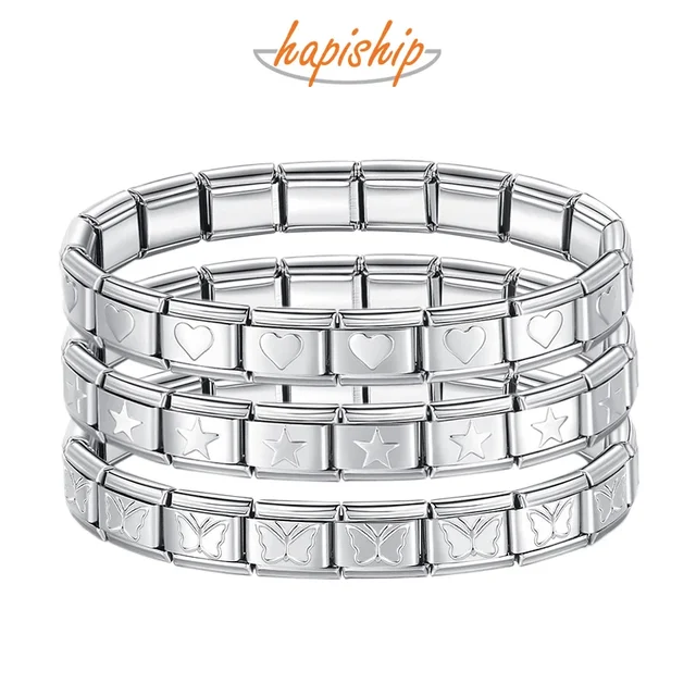 Hapiship 2024 Women’s Jewelry 9mm Width Itanlian Elastic Star Heart Butterfly Charm Bracelet Fashion Stainless Steel Bangle ST-