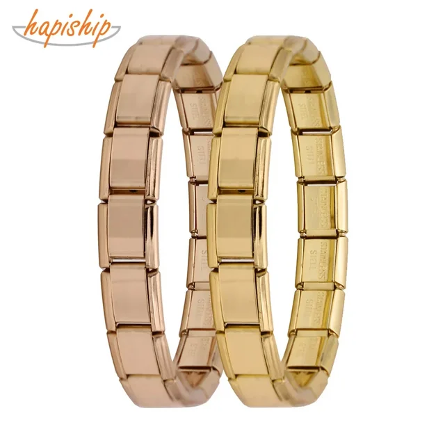 Hapiship Top Women’s Girl Jewelry 9mm Width Itanlian Elastic Charm Bracelet Fashion Stainless Steel Bangle Jewelry G096