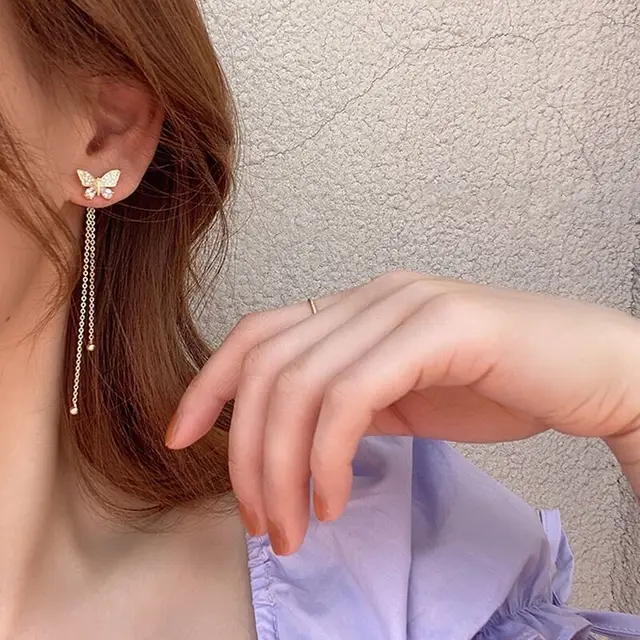 Exquisite Butterfly Long Tassel Earrings Two Ways To Wear Rhinestone Drop Earings For Women Party Wedding Jewelry Girls Gifts