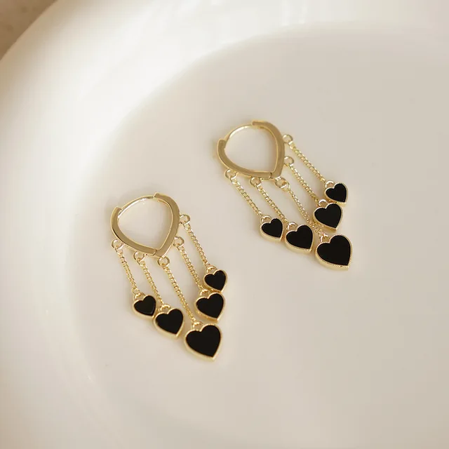 Cute Black Shell Love Dangle Earrings For Women Trendy Heart Shape Tassel Earring Fashion Versatile Daily Work Jewelry