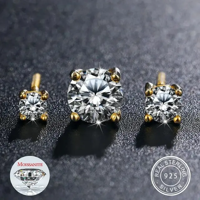 Smyoue Original S925 Sterling Silver Moissanite Stud Earrings VVS Round Cut 18k Gold Imitation Diamond Ear Studs for Women Gift
