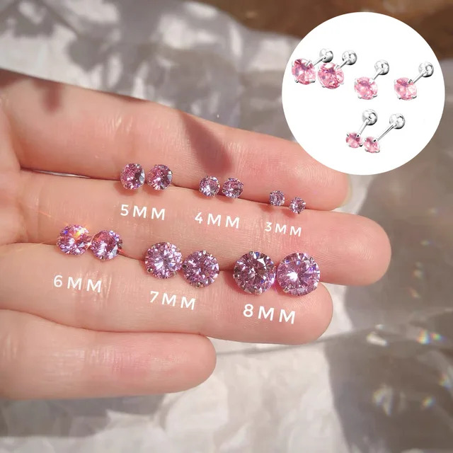 Purple Color Trendy Moissanite Rhinestones Sparkling Stud Earrings for Women Daily Wear Party Jewelry Accessories