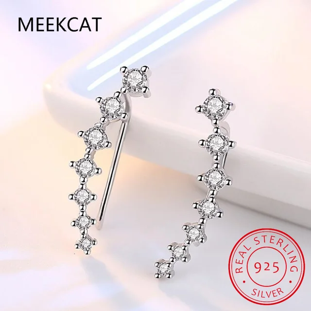 Moissanite Earring Long Line Ear Climber Stud Earrings For Women 925 Sterling Silver Ear Crawlers Studs Piercing Jewelry