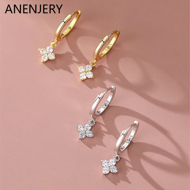 ANENJERY Zircon Flower Pendant Hoop Earrings for Women Simple Fashion Huggies Jewelry aretes