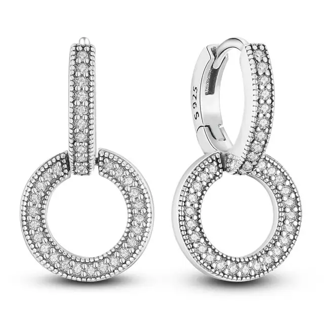 925 Silver Ear Jewelry Hollow Circle Shiny Zircon Inlaid Dangle Earrings Elegant Style Daily Casual Chain Wedding Ladies’ Gifts