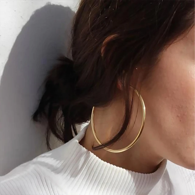 Gold Color Stainless Steel Hoop Earrings For Women Men Big/Small 10mm 75mm Circle Round Ear Jewelry Bijoux Acier Inoxidable