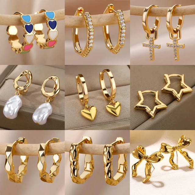 Heart Stainless Steel Earrings for Women Zircon Gold Color Hoop Earring Aesthetic Waterproof Ear Piercing Jewelry Accessories