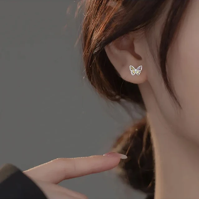 Korean 925 Silver Needle Tragus Piercing Helix Studs Earrings for Women 2Pcs Butterfly Heart Trendy Ear Piercing Body Jewelry