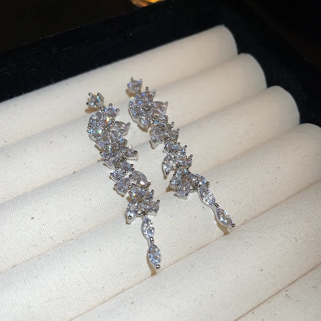 Exquisite Leaves Crystal Flower Stud Earrings For Women AAA Zircon Rose Butterfly Tassel Earring Bride Wedding Party Jewelry