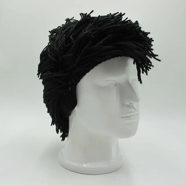 Bandana Hobo Caveman Wig Beanie Winter Warm Hat Handmade Knit Skullies Men Women Gorros New Halloween Gifts Funny Caps Christmas