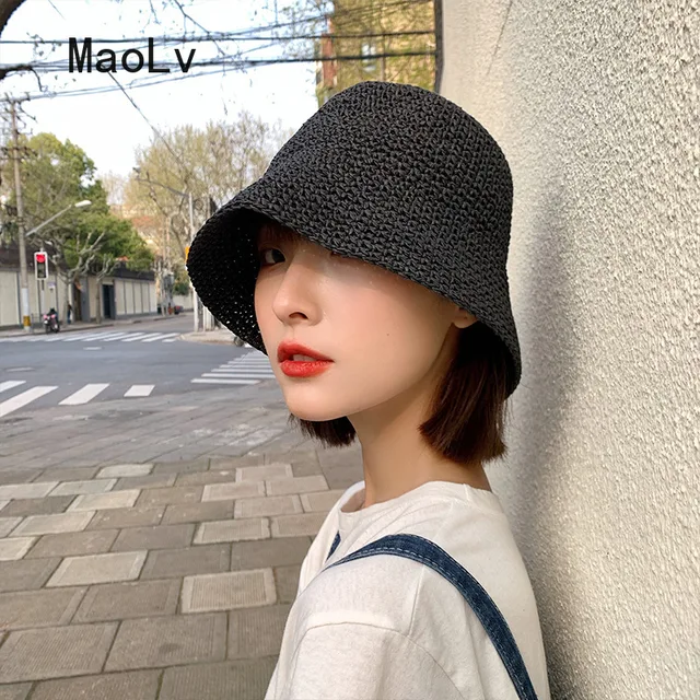 Beach Korean Straw Hat Summer Women Visor Bucket Hat Fisherman Hat Hand weaving Panama Girl Fishing Chapeau Sun Hats tool