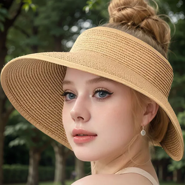 Summer Sun Hat For Women With Empty Top Large Brim Woven Straw Sun Protection Hat Fashionable Temperament Beach Straw Hat