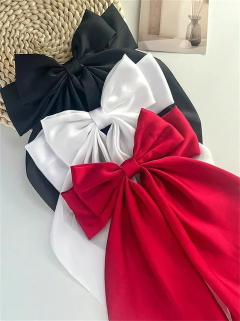 1pcs Wome Solid Color Satin Ribbon long Big Bows Hairpin Internet red Spring Clips Hair Accessories for Girls Trendy Summer He