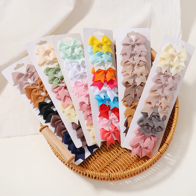 10Pcs/Set New Cute Solid Ribbon Bowknot Hair Clips for Baby Girls Handmade Bows Hairpin Barrettes Headwear Kids Hair Accessories