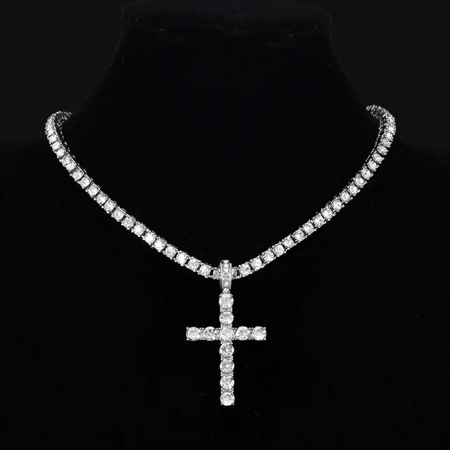 Men Women Hip Hop Cross Pendant Necklace With 4mm Zircon Tennis Chain Iced Out Exquisite Bling Jewelry Fashion Trendy Creative
