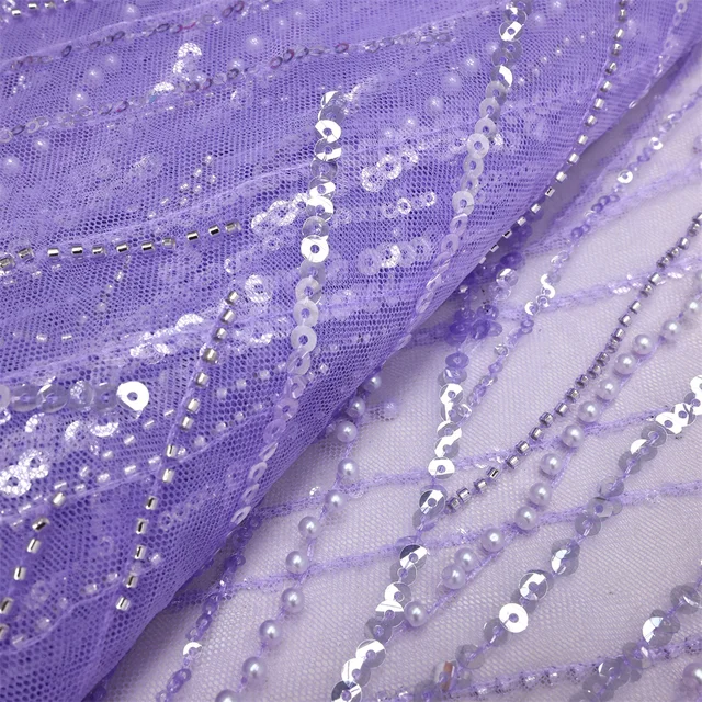 Luxury African Sequins Beaded Lace Fabric 2024 High Quality Groom Nigerian Wedding Bridal Embroidery French Tulle Sewing