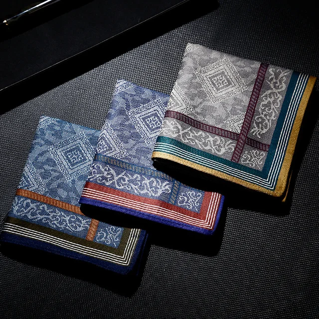 3pcs/Set Men Plaid New Square Jacquard Cotton Handkerchief For Gentlemen Cashew Flower Pocket Towel Wedding Party Christmas Gift