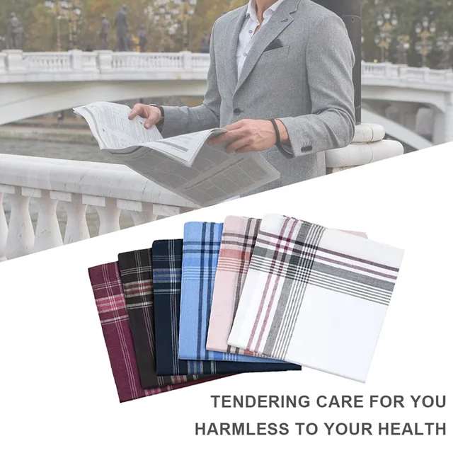 6PCS fabric handkerchief Thin style men’s business plaid western cloth outdoor decorative handkerchief soft sweat 15.7 inch