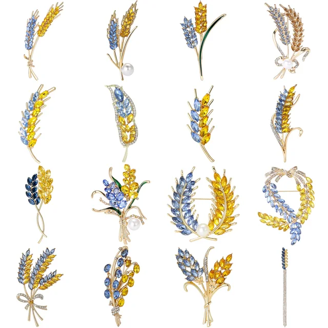 Trendy Rhinestone Wheat Ear Brooches for Women Ukrainian Wheats Pins Enamel Plant Badges Office Party Friend Gifts Accessories
