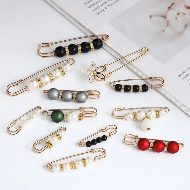 Women New Skirt Waist Artifact Waist Pin Cute Imitation Pearl Rhinestone Brooch Anti-lighting Pin Jewelry H1379