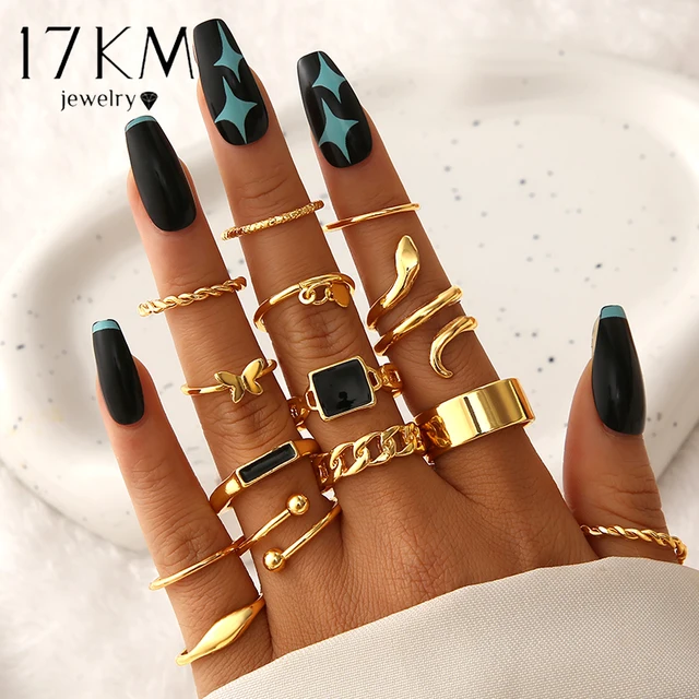Fashion Vintage Gold Color Snake Ring For Women Female 2023 New Trendy Geometry Punk Black Heart Butterfly Rings Set Jewelry