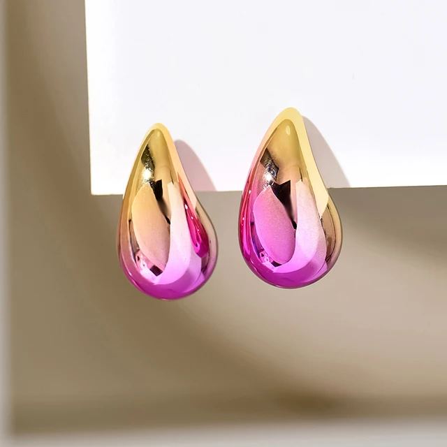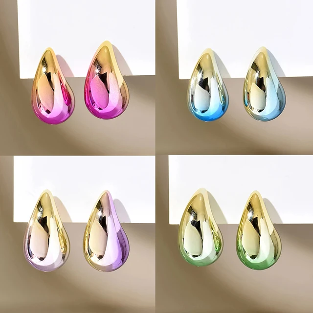 New 2PC/set Gradient Waterdrop Hoop Earrings Dupes for Women Thick Metallic Colorful Tear Drop Earring Lightweight Jewelry Gifts