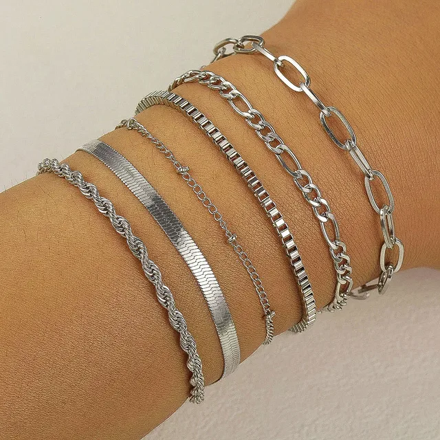 New 6 Pcs Gold Color Bracelet Set Boho Retro Thick Twist Cuban Chain Bracelet for Women 2023 Trendy Quality Jewelry Gifts