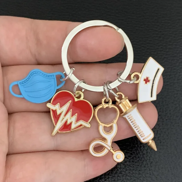 Medical Tool Doctor Keychain Heartbeat Stethoscope Syringe Nurse Cap Key Ring Nurse Gifts Handmade Jewelry Bag Ornaments Charm