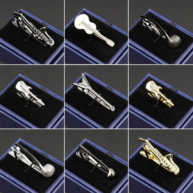 Fashion Metal Men Tie Clip Golden Musical Instrument Guitar Scissors Leaf Glasses Shape Simple Bar Clasp Mens Suit Wedding Gift