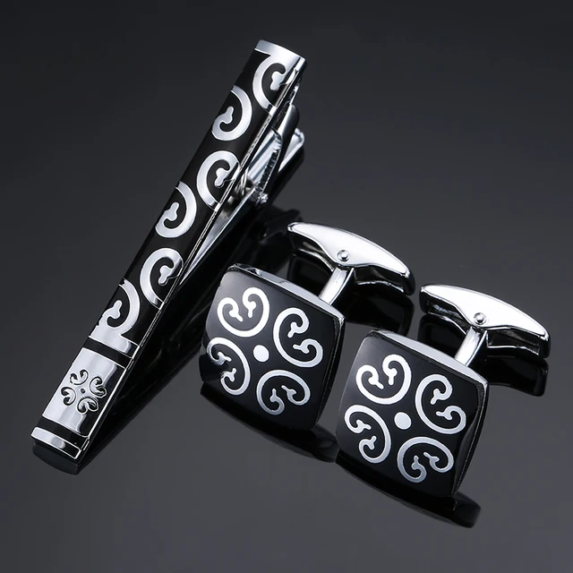 High Quality Cuff links necktie clip for tie pin for men’s gift Classic pattern tie bars cufflinks tie clip set Men Jewelry