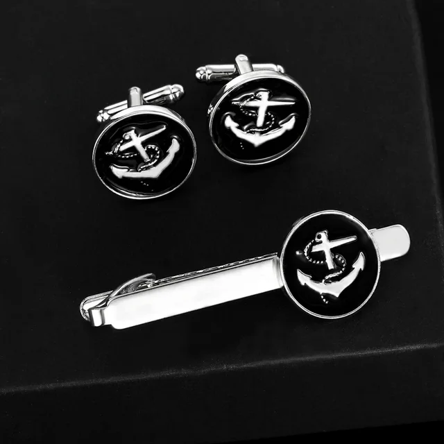 High-end Anchor Rudder Men’s Cufflinks Personality Business French Shirts Cuff links Tie Clip Lapel Pin Navy Style Gifts for Men