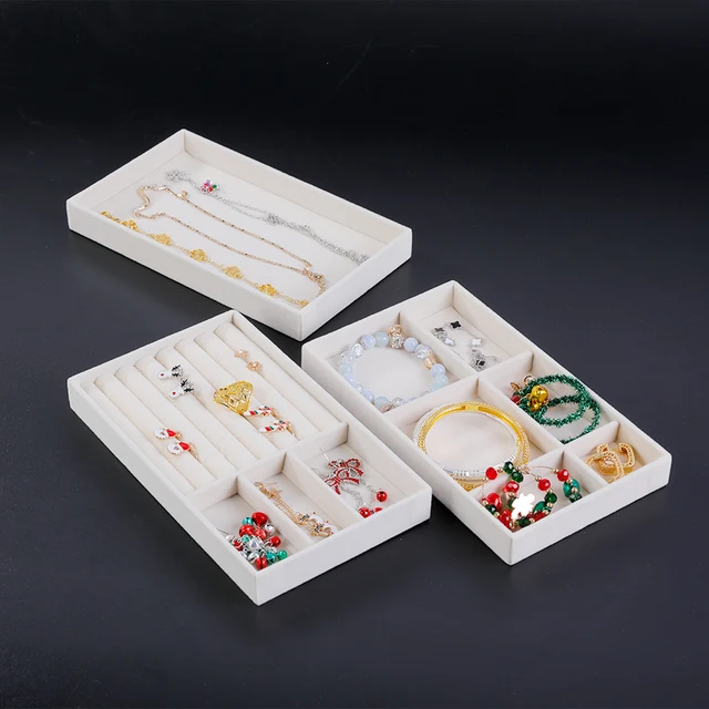 1PC, Flocking Jewelry Box Jewelry Tray, Color: Beige