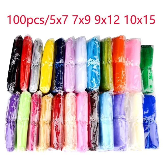 100pcs/lot Wholesale Organza Bags 5*7 Drawable Wedding Packaging Gift Bag Party Jewelry Bags Pouches