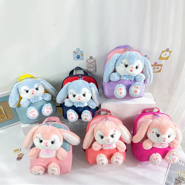 Plush 3D Rabbit Backpack for Boys Girls Kids Children SchoolBag Cute Bow Tie Cartoon School Bags Kindergarten Preschool Baby Bag