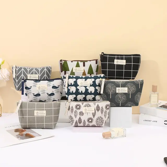 New Canvas Cosmetic Bags Zipper Opening Key Card Holder Cartoon Student Pencil Case Coin Purse Ladies Hand Portable Storage Bag