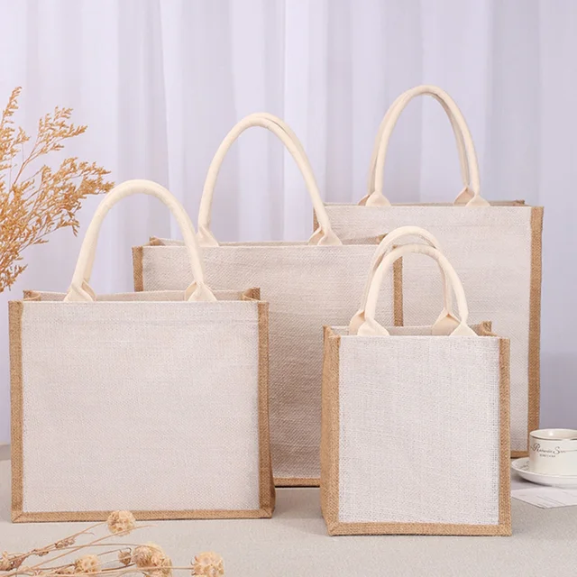 Women Shopping Bag Jute Handbag Portable Canvas Grocery Tote Handbag Ladies Outdoor Handbag Reusable Gift Bags Totebag