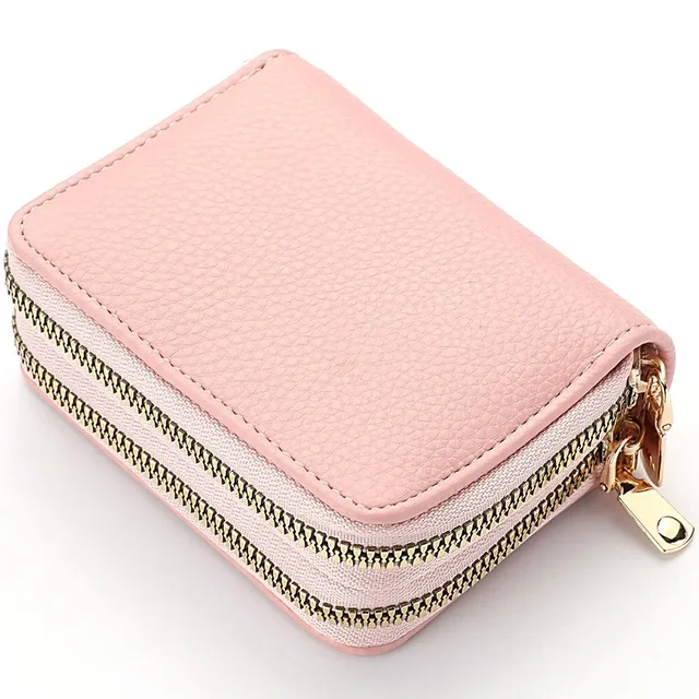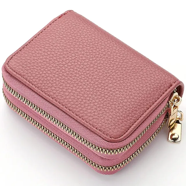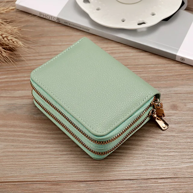 Multi functional dual zipper large capacity accordion card bag for women, fashionable and simple double-layer zipper women’s coi