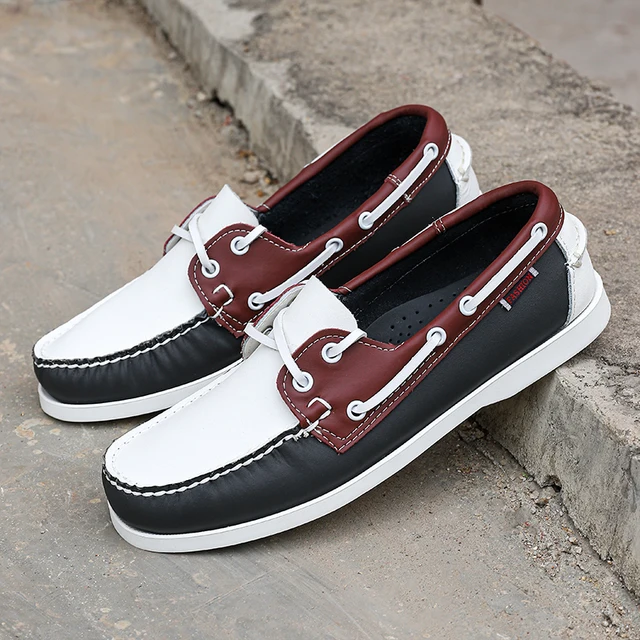 Genuine Leather Mens Causal Shoes Summer Comfy Lace-up Sneakers Shoes Luxury Brand Business Boat Shoes Mocassins Male Loafers