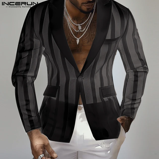 INCERUN Handsome New Men’s Tops 2024 See-through Striped Suit Coats Fashionable Male Hot Selling Long Sleeved Blazer S-5XL 2024
