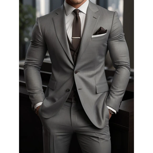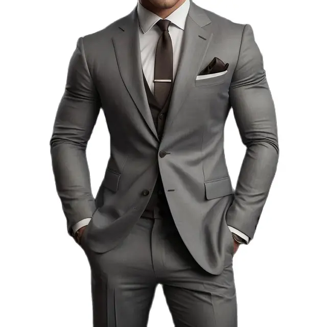 High Quality Men’s Suits Grey Outfits Single Breasted Notch Lapel Wedding Costume Homme 3Piece Jacket Pants Vest Slim Fit 2025