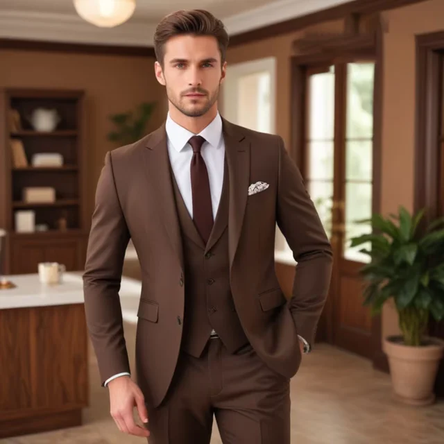 Dark Brown Suits for Men Fashion Single Breasted Solid Male Suit Fashion Business Casual Formal Wedding Party Tuxedo 3 Piece